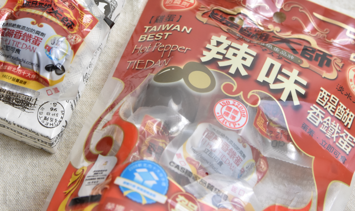 醍醐大師的口味至少有五種,不過我偏愛原味+重口味,所以這次宅配我選了四包,分別是原味鐵蛋、蒜香鐵蛋、黑胡椒鐵蛋、辣味鐵蛋。