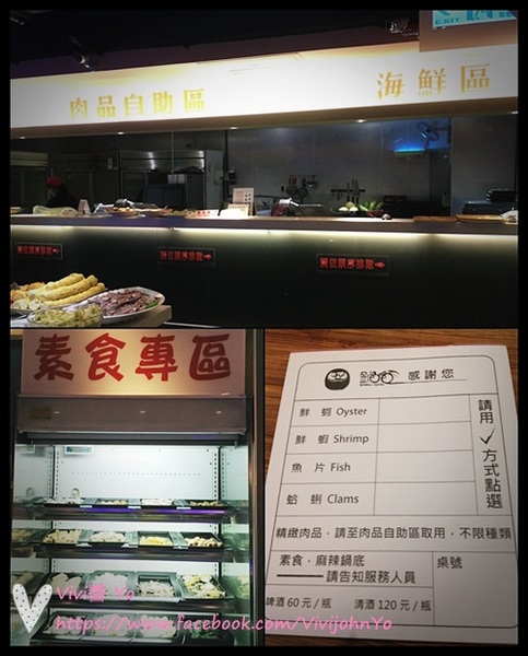 自助區有另外隔一小區素食類櫃位,而桌上的小單子主要是用來點海鮮的,