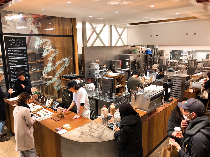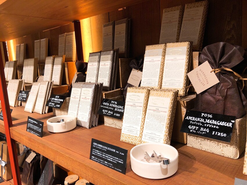 Dandelion Chocolate專賣店起源於美國舊金山,堅持” Bean to Bar ”的理念並將其引進日本並隨之帶起一陣旋風。Bean to Bar意指從可可豆的購買、選別、烘烤、研磨、調溫、鑄型、包裝等等,所有巧克力製程都一手包辦,將專業的巧克力工廠搬進咖啡廳,巧妙結合二者讓巧克力更貼近民眾的生活。