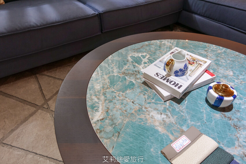 特別的石材圖案在外面很少見,像我就很喜歡這個藍綠色的Tham特姆茶几,