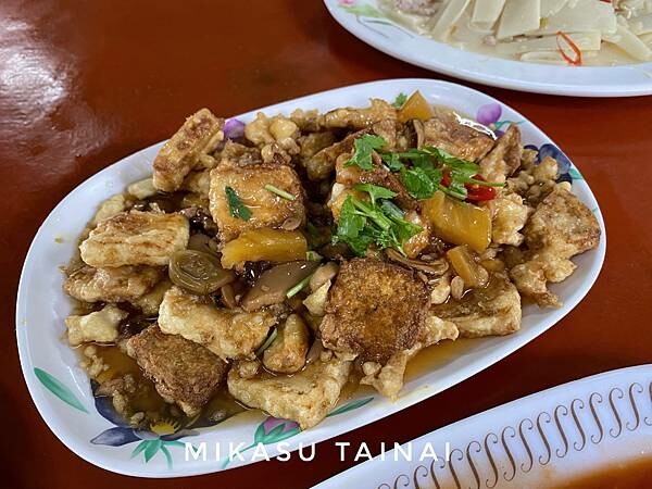 他們的梅香豆腐是豆腐炸過之後用梅子醬汁調味,我覺得醬汁還不錯,不像其他道加梅子醬的會有明顯的梅子味、口味有點酸嗆,梅香豆腐的醬汁特別淡,配豆腐其實味道上很剛好,不會搶道豆腐原本的香氣,可是他這個豆腐的麵衣有點太厚了,我覺得滿影響口感的,吃起來有點普普通通的,如果他沒有麵衣可能會變成我很愛的菜色,現在有麵衣就普通。