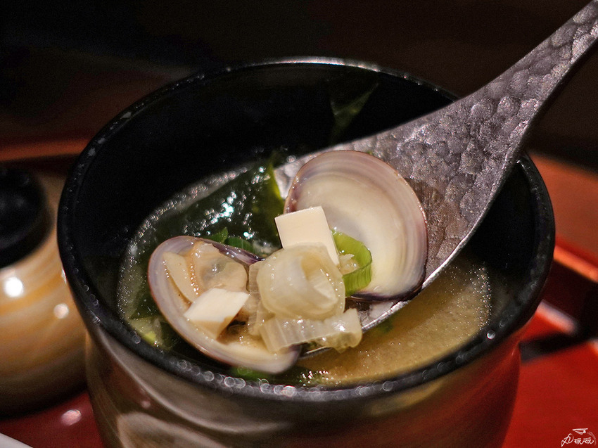 味噌湯配料豐富,有海帶芽、豆腐和蛤蠣,味鮮香濃。