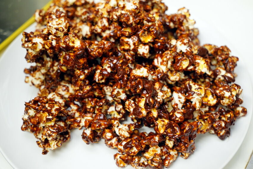 ▼每一顆爆米花都均勻裹上糖漿,等到冷卻凝固後就能吃到爽脆的口感!