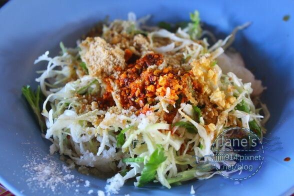 花生粉、高麗菜絲跟一些生菜,