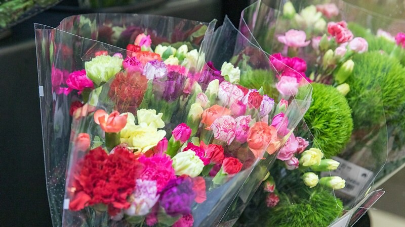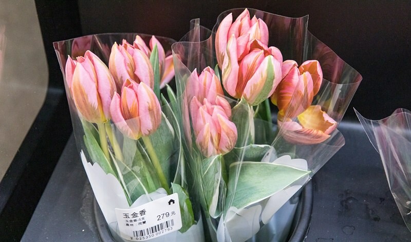超商附設的花束區,因應即將到來來的母親節,也推出應景的康乃馨。