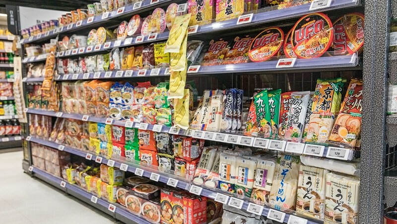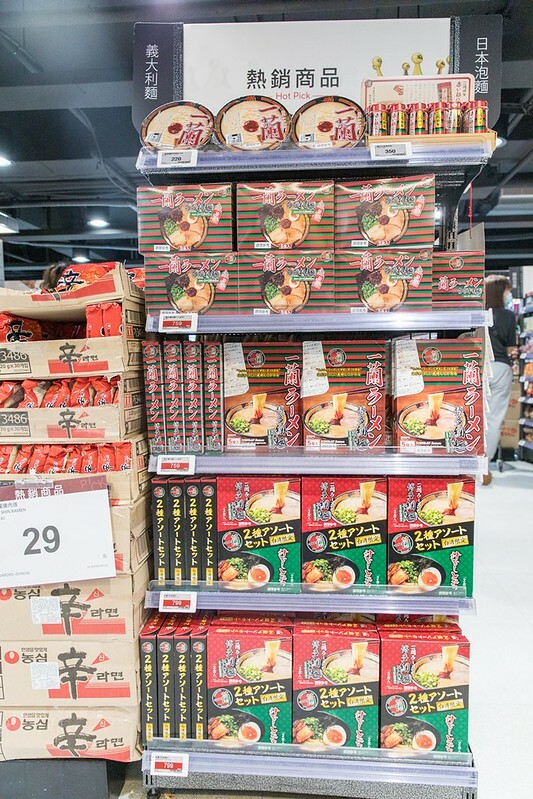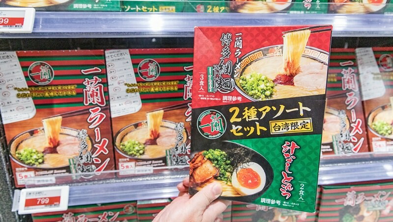 11一蘭限定泡麵+新之助新潟南魚沼米:泡麵區除了台灣數十種泡麵外,也有日本泡麵,甚至是多款一蘭的泡麵,居然還有乾的豚骨拉麵包,而且還台灣限定一盒兩種口味(乾、湯)。