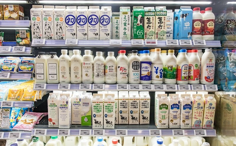 8台日牛乳、歐風優格、日式起司乳酪專區:牛乳專區有幾款在日本很紅的牛乳外,還有多款台灣本地鮮乳可供選擇。