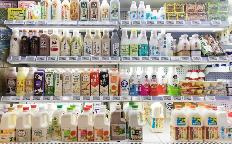 台灣品牌的果汁、綜合調味乳、豆漿、米漿也有不少選擇。