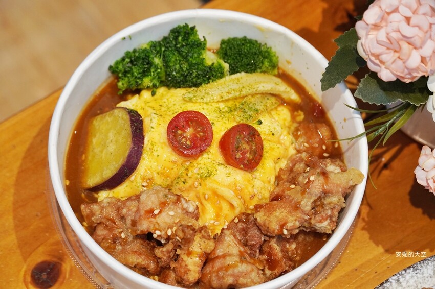 「荷亞輕食館」有早午餐、義大利麵、燉飯、漢堡、羅馬脆皮披薩、和風沙拉等,最讓我驚豔的是這裡的咖哩,我對咖哩口味超級挑的,原本以為這樣的平價咖哩口味應該一般般,沒想到卻是我最喜歡的餐點呢。