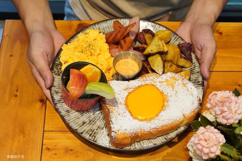 喜歡法式吐司的朋友一定要來吃這間,可愛爆棚的德式楓糖布丁吐司外表超吸睛的,以牛奶土司作為基底,裹上蛋液以及牛奶香煎而成,灑上細緻糖霜以及淋上楓糖,這樣已經是超級無敵的法式吐司了,沒想到店家頗有創意,加上黃澄澄的起司醬,猛一看我以為是太陽蛋,起司醬佐法式吐司的結合風味超特別,這根本是法式吐司界的天花板啦。