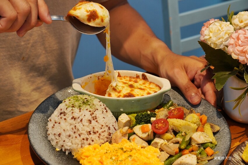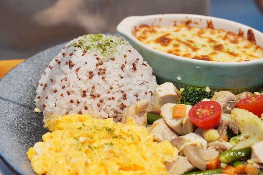 夢幻系的紅藜麥飯,搭配繽紛的雞胸肉溫莎拉,還有超狂的焗烤蜜地瓜,搭配炒嫩蛋,這樣一盤的荷亞招牌是店家的隱藏版菜色,現在來店裡說要一份[隱藏版],就能用"半價"的價格吃到喔。