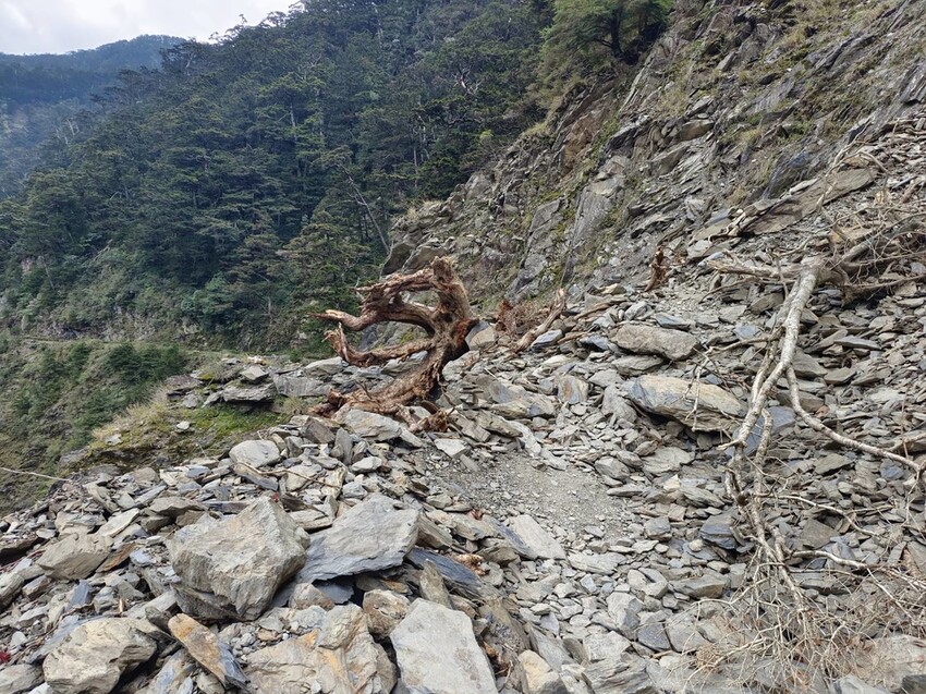 路途會經過一塊崩壁~為了安全起見!必須快速通過~