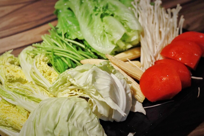 巴適經典麻辣鍋都會選用不少當季食蔬以及菇類,選擇性很豐盛,像是高麗菜、水蓮、娃娃菜、玉米筍、金針菇等等都有喔!