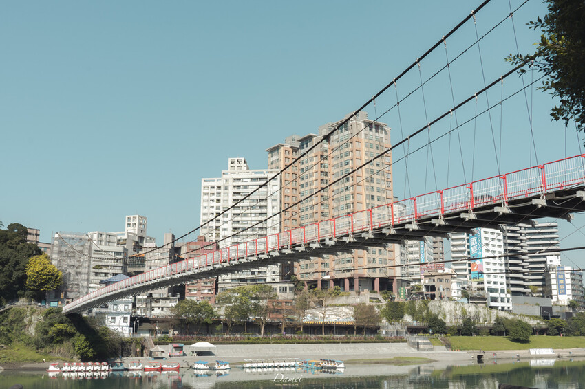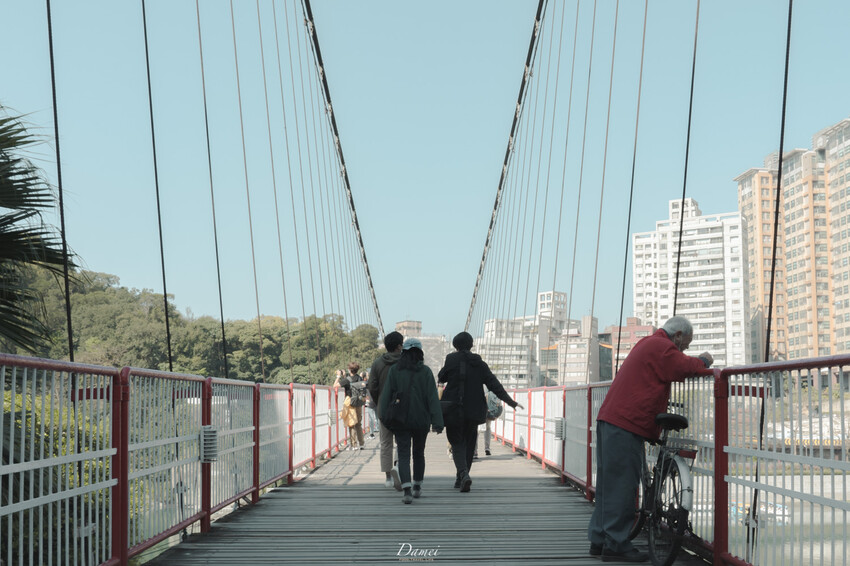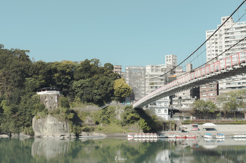 擁有百年歷史的碧潭吊橋,早期兩岸並無任何橋樑連接,必須依靠「擺渡船」往來,雨季來臨時溪流湍急不利於渡船,因此建造吊橋,過去橋樑可是能讓大型車輛行駛,現在僅供行人與自行車通過,步行在吊橋上別有一番風味,但我實在太害怕走吊橋,加上晃動的程度滿高的,只能全程勾著朋友的手臂才敢過橋(笑)。