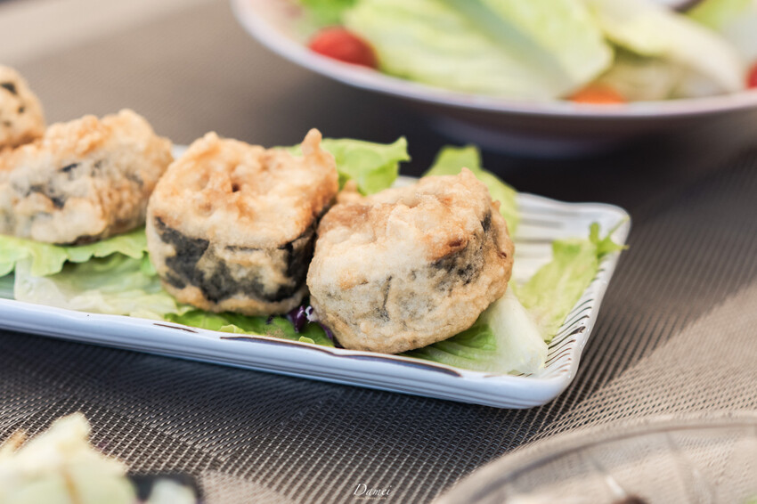 中午時間我們停留在阿熊灶咖用餐,它並不是一間熱炒店,而是結合中日韓三個國家料理所延伸的創意食堂,主理人過去在澳洲餐廳工作現在回到台灣經營自己的餐廳,會發現這裡不是一間裝潢優美的餐廳,專注在料理身上的他,一道道料理都是招牌菜,其中豬腳麵線更是人氣王!當天用餐讓我最著迷的則是「金沙南瓜」皮薄酥脆的口感以及南瓜本身甜度十足,沾上蛋黃醬真的會一試上癮。