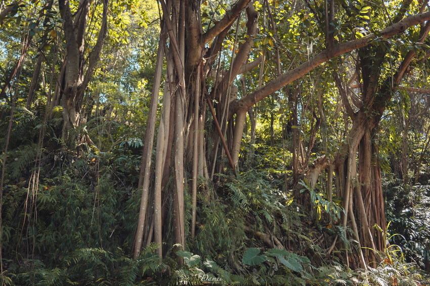 導覽老師特別熱情地想與我們介紹各式各樣的植物,一路上認識不完的生態,走一趟和美山步道,彷彿讀了本自然生態百科全書。普遍我們常見的榕樹有著一大串的樹鬚,而這些便是榕樹的氣生根,幫助吸收水分,往下升長最後成為樹幹,是不是與我們常見的大樹幹榕樹不同呢?