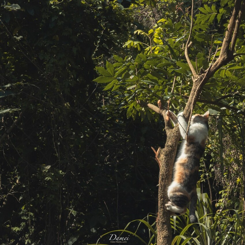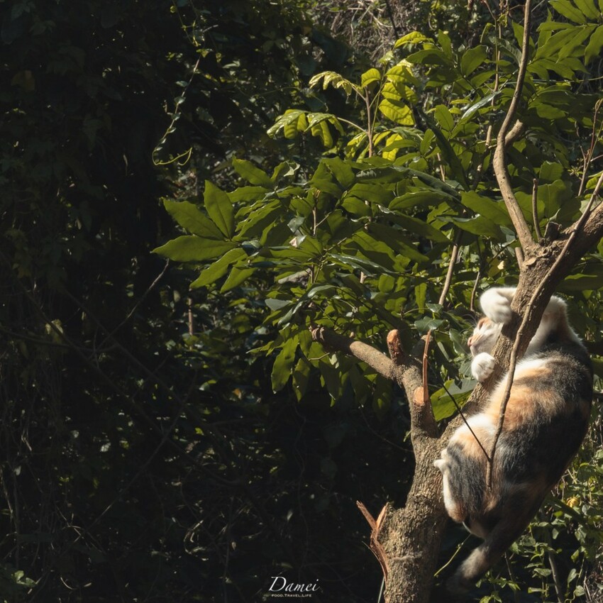 原本認真聽著導覽老師的解說,恍然間餘光瞄到一隻可愛貓咪正在爬樹,我們一行人的目光馬上轉到貓咪身上(笑)果然貓咪的魅力無法抵擋呀。
