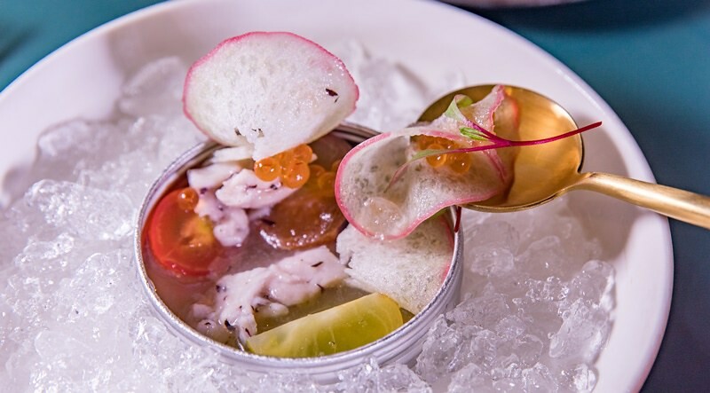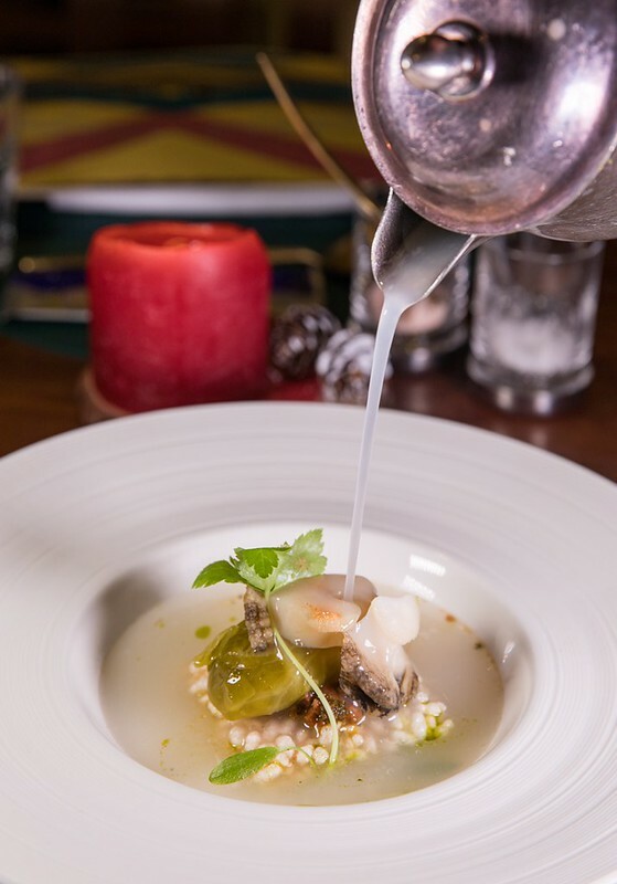 帶殼的生蠔微烤出鮮、香,加上西米讓其吸收生蠔的鮮美湯汁,吸睛的凝膠以香茅和伯爵茶,讓生蠔鮮美之前有著入口兩種不同微微的口齒清香,滿滿的泡沬帶著南洋椰奶的甜香,烤過再漬的甜椒和生蠔炸裂在嘴裡的湯汁交織出鮮甜中透著油醋的微酸,這極有層次的味覺,猜想即便再不喜歡生蠔的朋友都會喜歡。