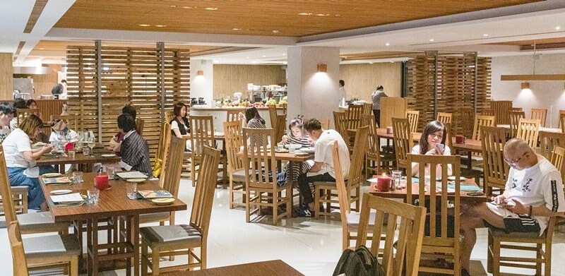 餐廳、座位都比我想像來大上、寬上許多,純一色的木製桌椅非常有質感,非假日的晚上客人約有5、6成,據說有不少是專程為了晚餐而來。附帶一提的是住宿是會員制,但晚餐是一般客人也可以訂位的。