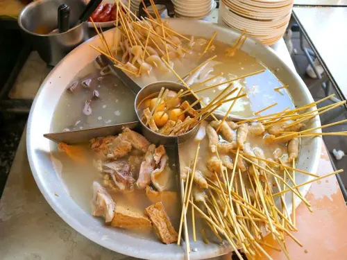 天啊~我很喜歡吃燙的黑輪跟米血,台北最少一隻都10元吧,阿麗一隻只賣你7元,真的是超佛心的~