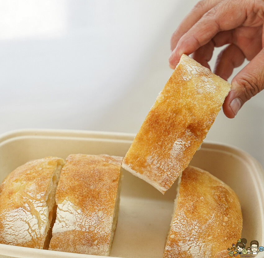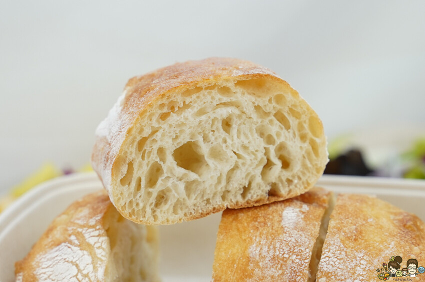 很大塊的巧巴達拖鞋麵包,冷掉口感會比較硬一點,可以搭配油醋滋潤