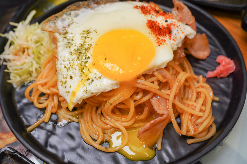 我們很喜歡吃日式炒麵,炒麵再加上太陽蛋,撒上海苔粉與七味粉…看這戳破蛋黃汁液流下來的模樣,是不是很可口~