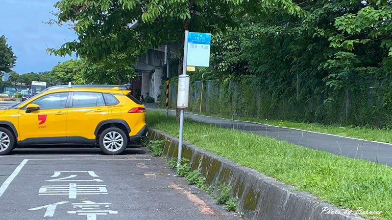 **近九號水門處竟然有公車站牌耶,這是離花海最近大眾運輸