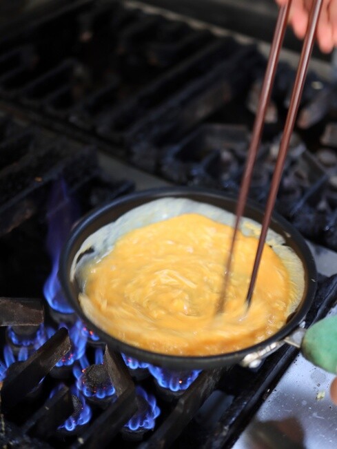 最後這個讓我心心念念的鐵板土司,這次吃感覺比上次又更美味!我先說如果你期待吃到的是有麵粉韌性口感吐司的話,這道不適合你。店家先把法式吐司浸泡長達5小時的特製蛋液,充分吸飽後才製作煎烤,內部軟嫩到近乎舒浮蕾的口感我超愛的~外層保有Q度,淋上香甜蜂蜜搭配著吃,這我自己吃掉一整塊也不膩啦!