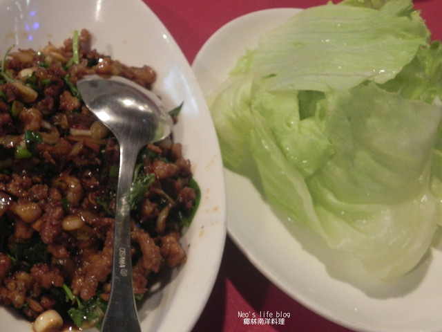 首先是打拋豬肉,附上一盤生菜可以包著吃