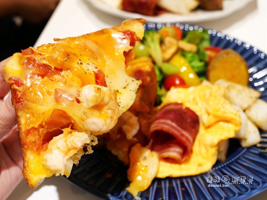 厚片pizza可以換厚薄三明治,當天選擇了番茄起司口味,趁熱喫才會牽絲、放久了稍嫌冷硬。