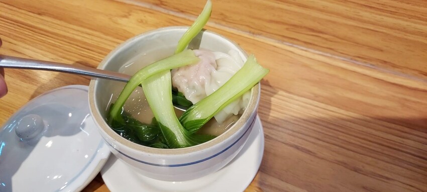 咬開餛飩,可以看到裡面的肉很鮮美,幾乎快把餛飩皮爭破的塞滿滿,所以每次來會換喝不同的湯品。