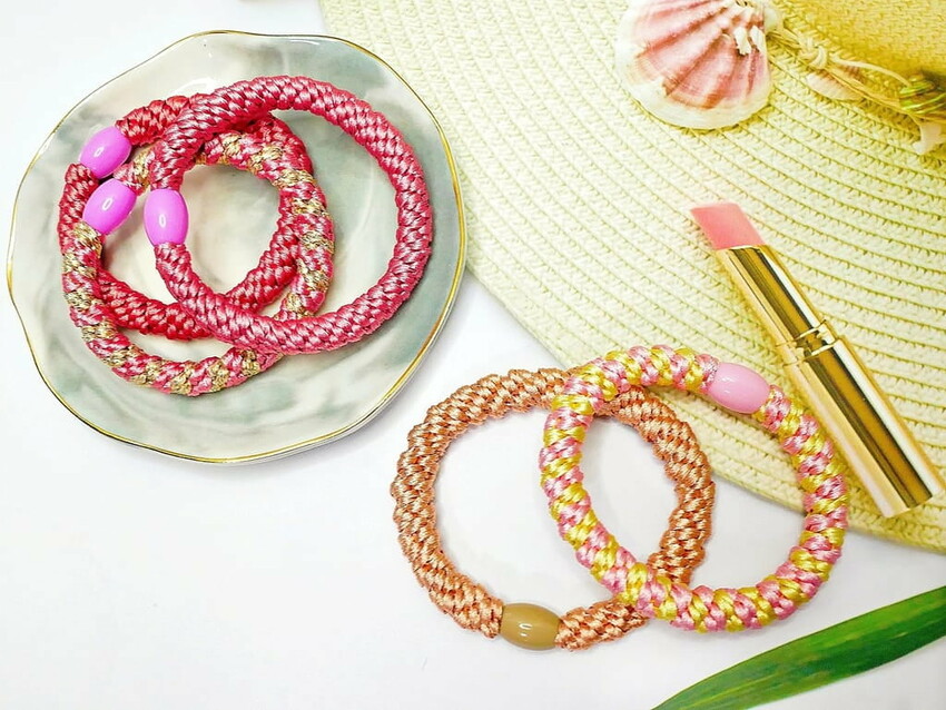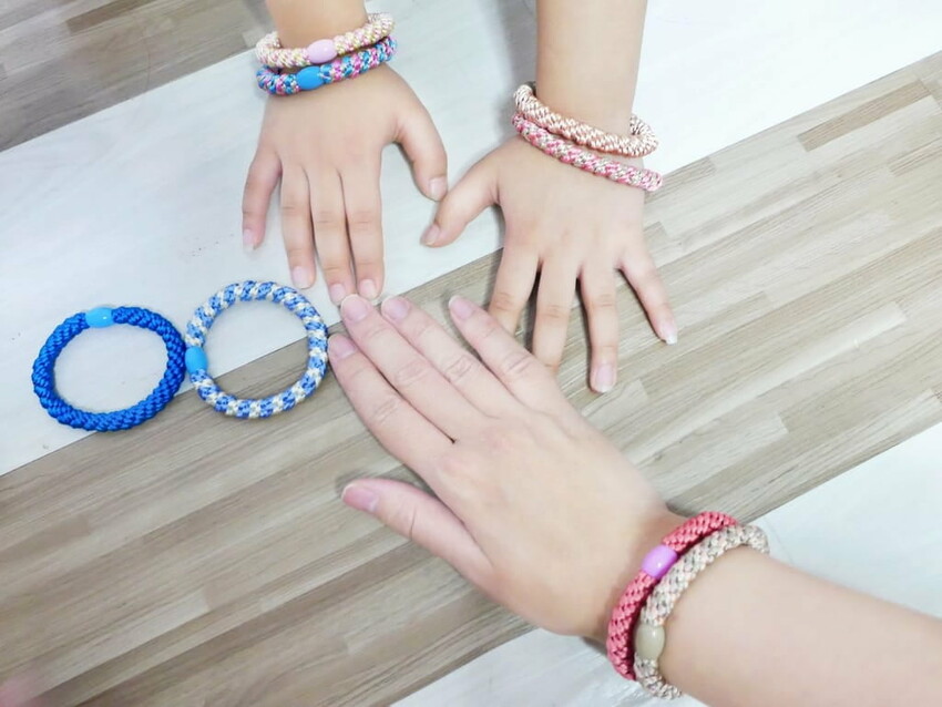 這款髮圈的材質.非常親膚且不咬手. 加上外表色彩繽紛.看上去很是療癒