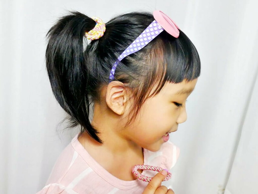 基本上我都是替寶貝們綁三股就可以維持一整天.若是上學綁上後不怕會掉了.真的很方便!