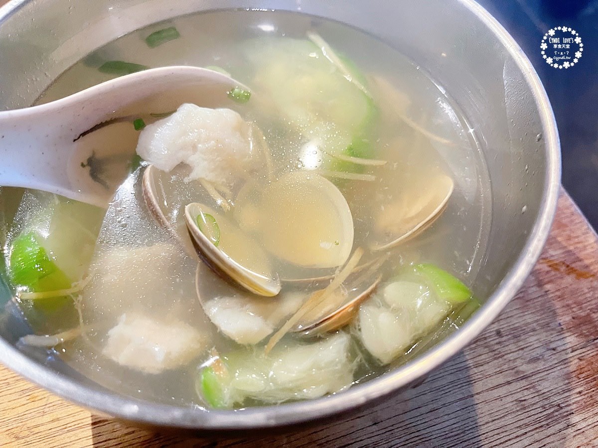 蛤蜊絲瓜湯,湯頭清甜,料也很多,蠻大碗的,可以點一碗分食,不夠再點。