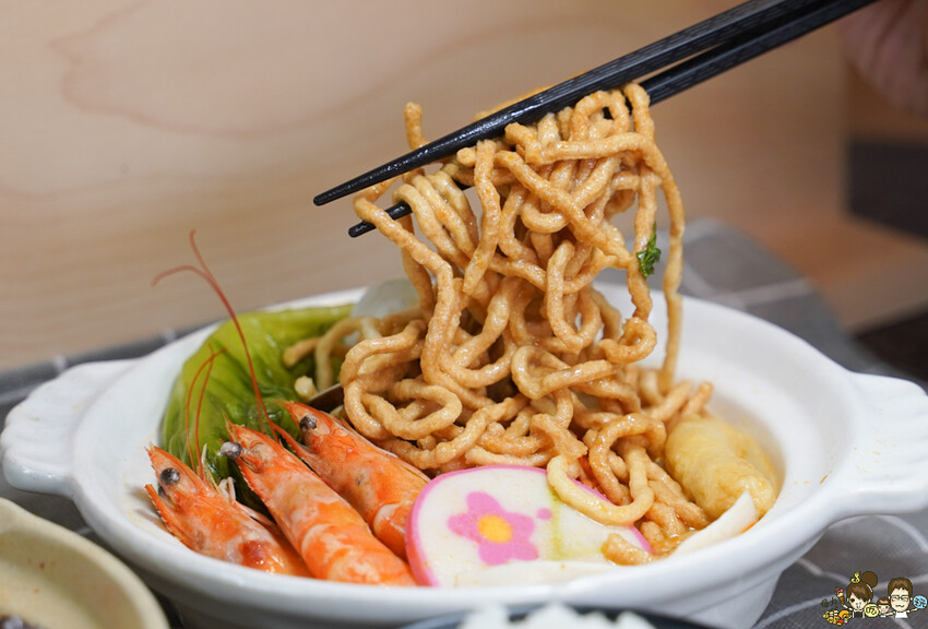 使用鹽埕區老字號的新順發粗意麵,使用鴨蛋製作的意麵會釋放出香濃滋味