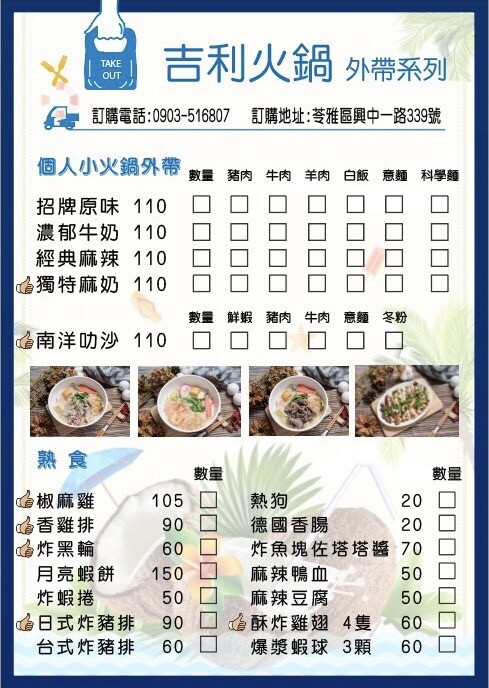 不內用也可以外帶百元小火鍋、招牌炸物美食