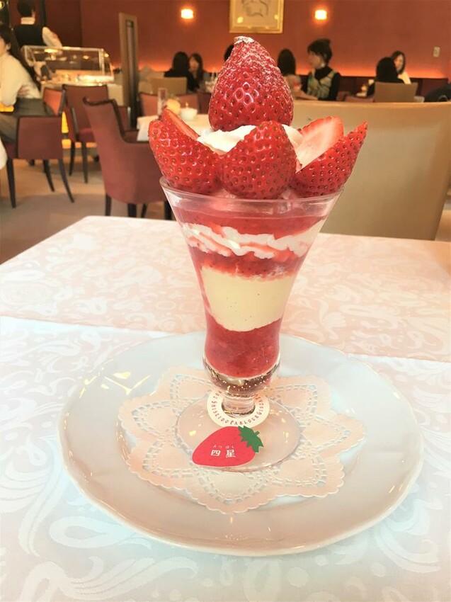 機會難得,所以我點了福岡產四星。草莓聖代送上來時,我都覺得它在閃閃發光
