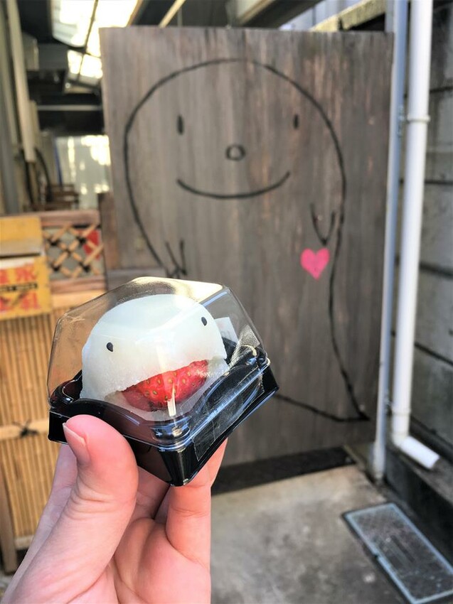 這家位於日暮里的江戸うさぎ是一家水果大福專賣店,除了草莓,還有蜜柑、葡萄等水果,甚至蕃茄大福。每一個大福都會用芝麻加上眼睛,以水果弄成吐舌的表情,非常逗趣,又稱為「妖怪大福」 。