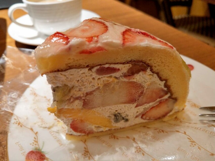 如果你自問對草莓的愛沒有那麼深,也可以選擇綜合水果蛋糕,只要980日幣,當中也用上不少的草莓喔!還可品嚐到芒果跟奇異果呢~