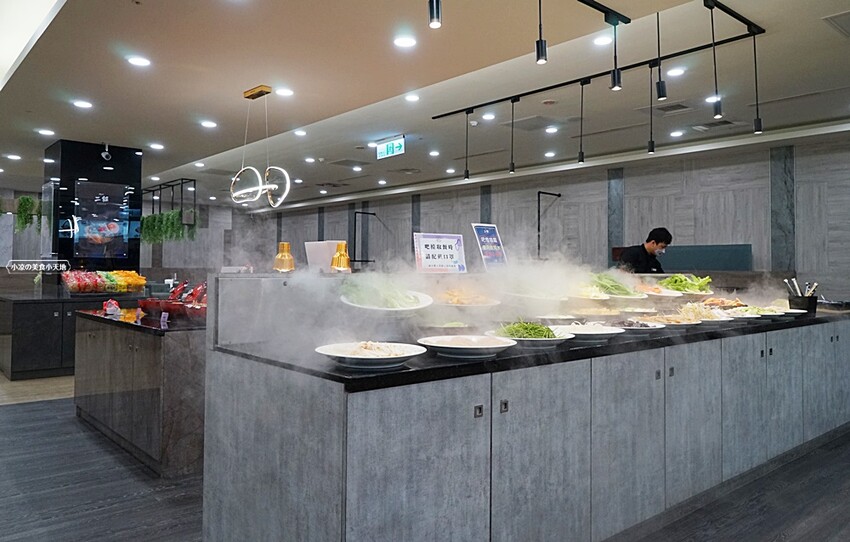 再來小凉就要先給大家介紹鬥牛士二鍋的自助百匯區,所有的品項都是無限量供應(以不浪費為原則夾取),拿取食材請戴好口罩唷! 我們就先從蔬菜區開始,每日會準備大約25-30種當季時蔬,並以水霧保鮮…