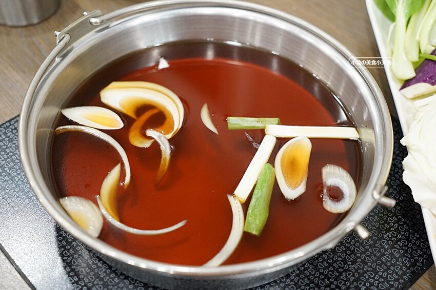 川味麻辣鍋+$49,鍋底有附鴨血、豆腐以及老油條,菜單上有特別註明以朝天椒、花椒及獨門醬料炒製而成的湯底,這一款真的是嗜辣者的最愛,那個辣香、麻味都相當的明顯,但對小凉來說還是有點偏辣,也可能我一開始就放入不少時蔬,菜菜吸滿了辣油入嘴真的好辣(我只能小辣),所以在品嘗的過程中如果覺得太鹹或太辣,可以自行拿取北海道昆布湯稀釋唷!