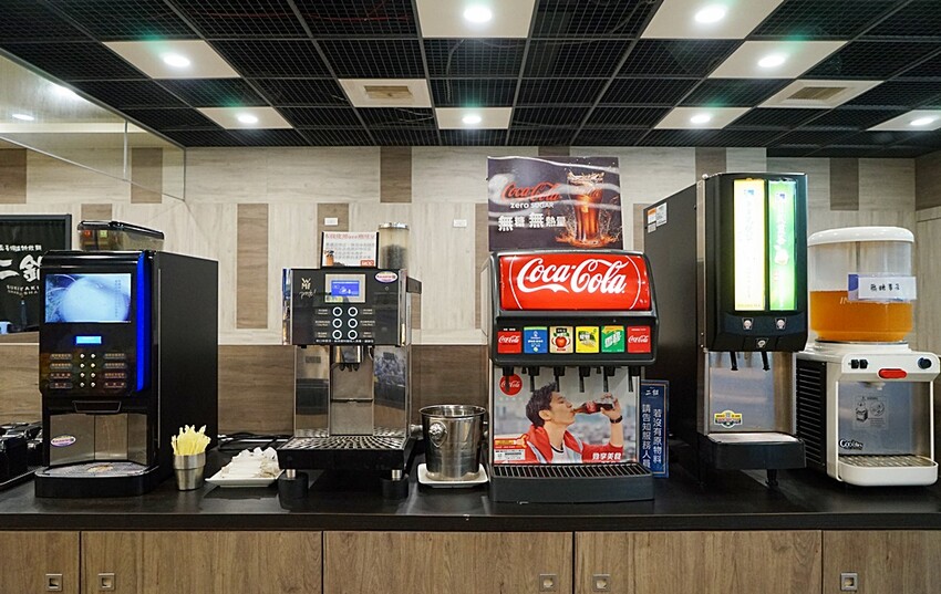 現泡茶、研磨咖啡、可樂氣泡、無糖麥茶通通有~~