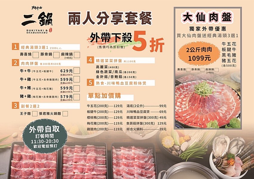 鬥牛士二鍋兩人分享套餐,外帶下殺5折、外帶自取時間11:30~20:30(建議先電話預訂唷)