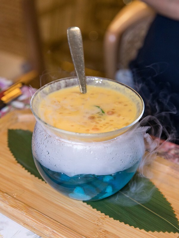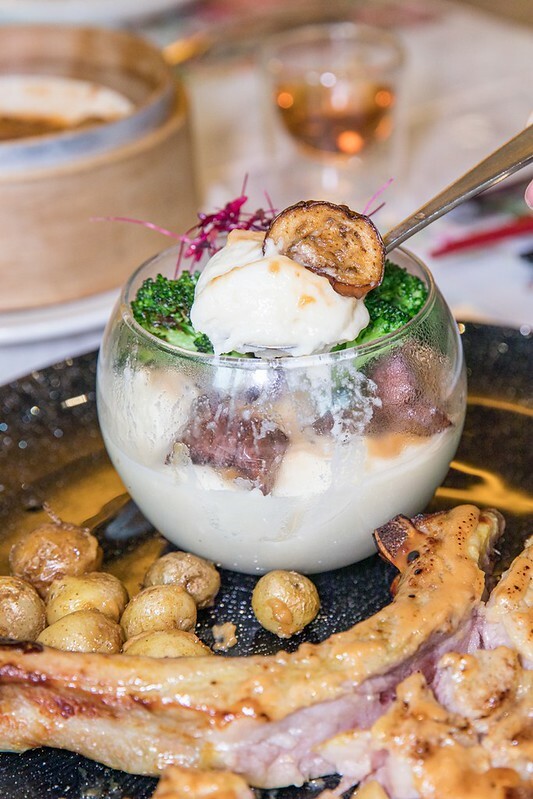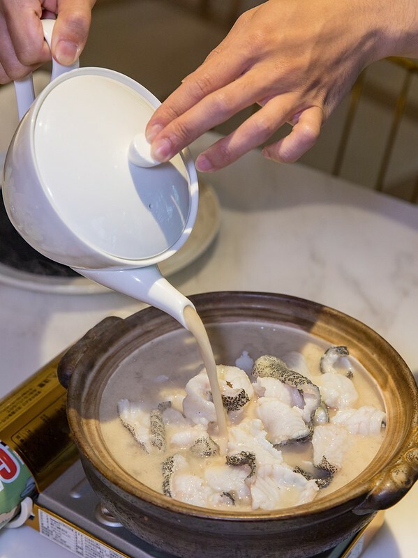 芋頭濃白鮮魚湯。軟款蝦、戰斧豬、雞湯都讓我有不一樣的感受,緊接著這魚湯同樣不惶多讓吃出全新的滋味。以龍虎班魚頭、魚骨熬出鮮白魚湯本就是不容懷疑的鮮甜美味,但加入芋泥、芋奶、芋頭三種不同芋頭成份再一起熬煮,光聽就讓我這個芋頭控受不了,另外還有山藥和龍虎班魚片。