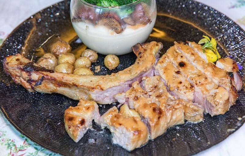 胡麻醬烤戰斧,又是一道引人遐想的料理,光是上菜時那顏色就讓人在心裡連問三次:「這是什麼、這是什麼、這是什麼」。