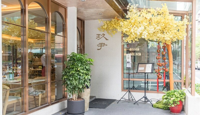 玖尹位於捷運松江南京站,緊臨伊通公園,旁邊便是個人蠻喜歡的冠軍咖啡「fika fika」,餐廳的外觀有著飯店氛圍,華麗卻又不失自我風格。
