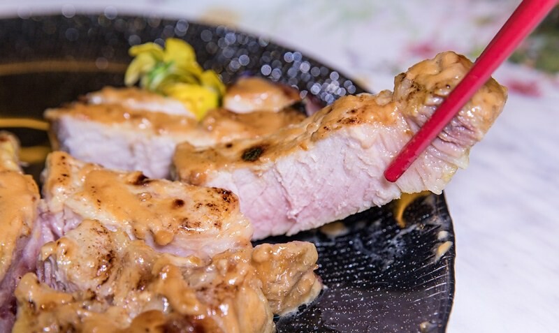 這戰斧豬不管是口感還是油甜都有水準,但味道更是一色,不算太算(淋上去)的胡麻醬帶路,酸甜之餘隱約還有味鹹的鹹香和豆瓣的微微辣、蒜香及像是烤又像炙燒的油焦香,味道層次比想像中豐富許多,好吃的亂七八糟。