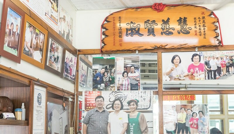 店裡掛滿政治人物、明星的合照,因為入選蔡英文國宴肉圓,所以不少跟她的合照。