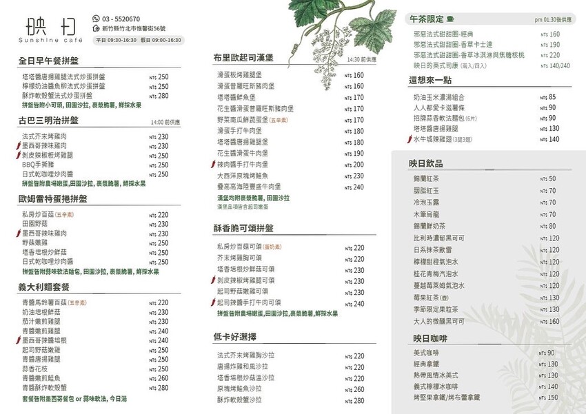 映日早午餐整個五月份,只要外帶,全品項即享九折優惠!內用任一主餐搭配一杯飲品或咖啡,即折扣30元!(低卡好選擇、午茶限定即還想來一點不包含在內!)