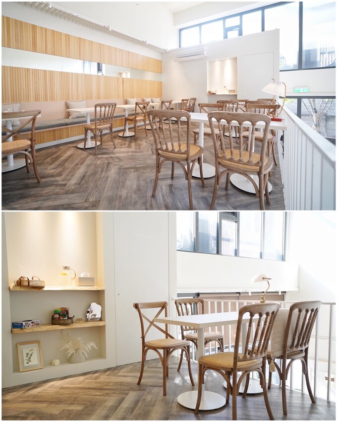二樓也有不少座位區,也以2~4人桌為主,整個空間除了有清新北歐風格之外,也用了很多韓風元素的物件妝點,讓用餐舒適度提高許多!